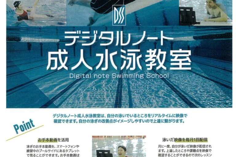 デジタルノートを導入した成人水泳教室を6月5日(水)より開講いたします。 本サービスでは、プール内カメラを使用し映像による分かりやすい指導を提供しています。 また、月1回映像を配信する機能もございますので、あとで映像にて…