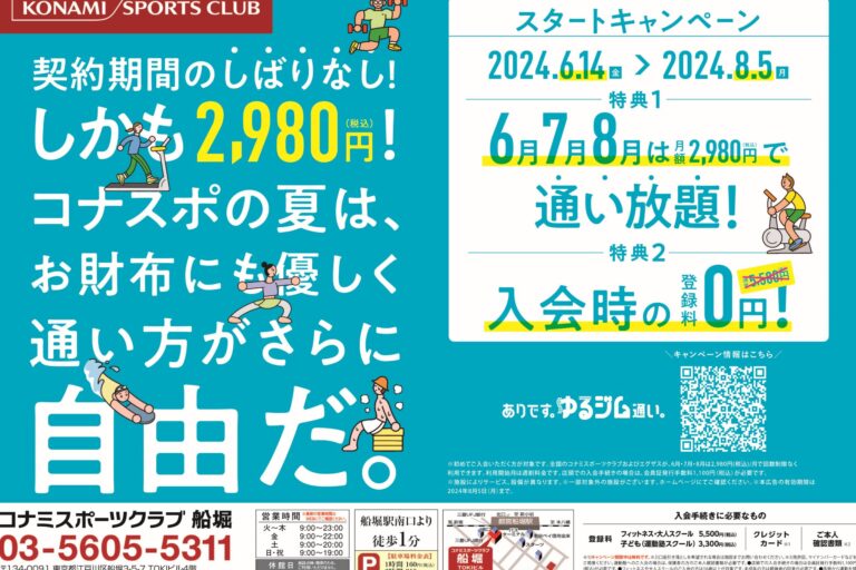 お得な夏のキャンペーンが始まりました! 「コナスポの夏は自由だ。契約期間のしばりなし!しかも2,980円!」 【期 間】 2024年6月14日(金)~8月5日(月) 6月7月8月は月額2,980円(税込)で通い放題! 入…
