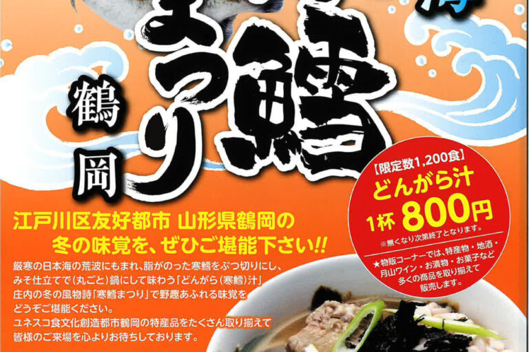 2月32026 TOKIビルニュース 寒鱈まつり2月15日に開催! TOKIビルニュースtokibiruから2026年2月3日 山形県鶴岡市主催の『寒鱈まつり』が今年もTOKIビル前にて開催されます。 戦時中に江戸川区の学童が疎開した山形… 続きを読む