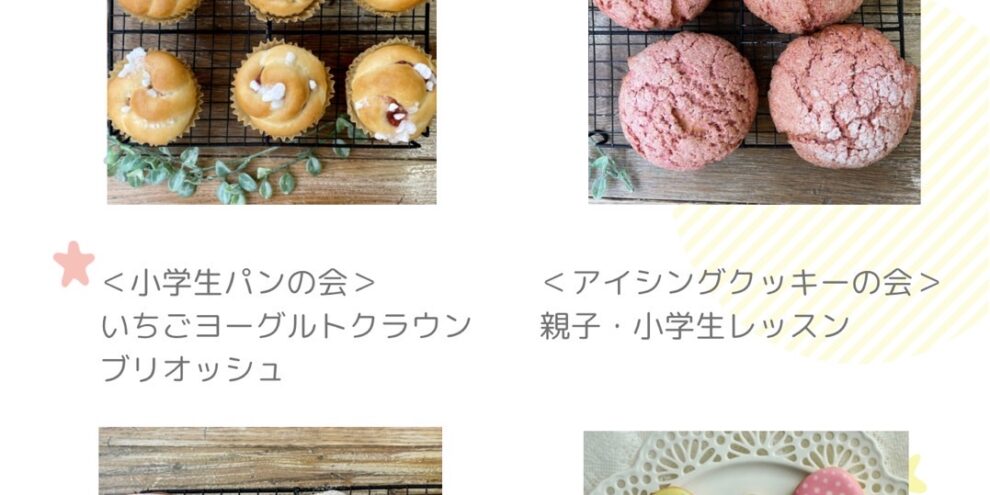 パン・焼き菓子販売deパン教室のけさらんぱさらんです。 令和5年4月レッスンのご案内です。 親子・キッズパン教室 「いちごジャムローズパン」 大人向けパン教室「いちごメロンパン」 小学生パン教室「いちごブリ…