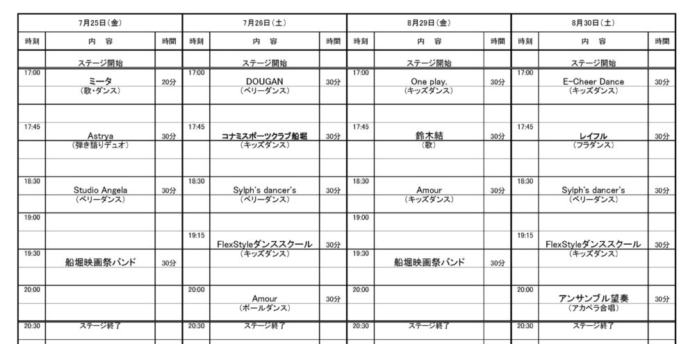 『ときめきビアガーデン2025』のステージスケジュールをお知らせいたします。 ビアガーデンの開催時間は各日17時~22時となります。 天候悪化により中止、変更となる場合があります。